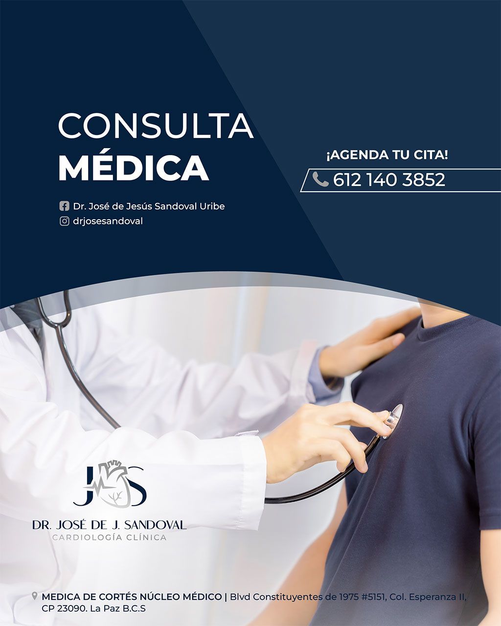 La Paz, Baja California Sur. Se especializa en el diagnóstico, tratamiento y seguimiento de enfermedades cardiovasculares, brindando atención médica con enfoque humano, claro y profesional.